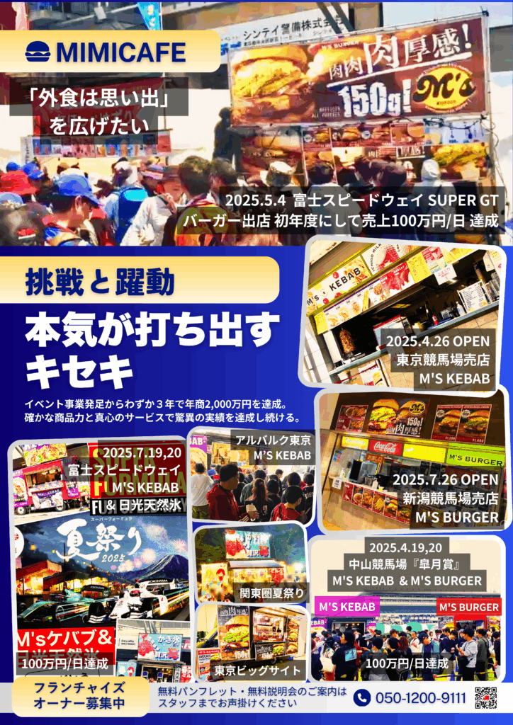 キッチンカー開業わずか3年で年商2,000万!の実績をもとに、ミミカフェではフランチャイズオーナーを大募集!